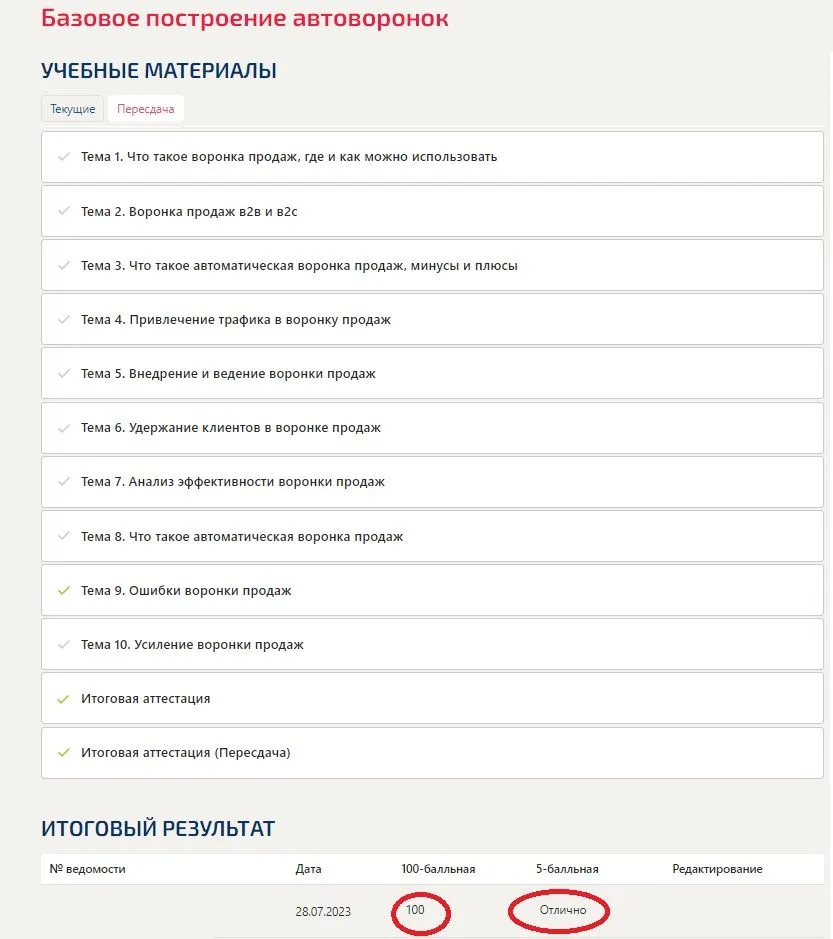 Итоговая аттестация (Пересдача)