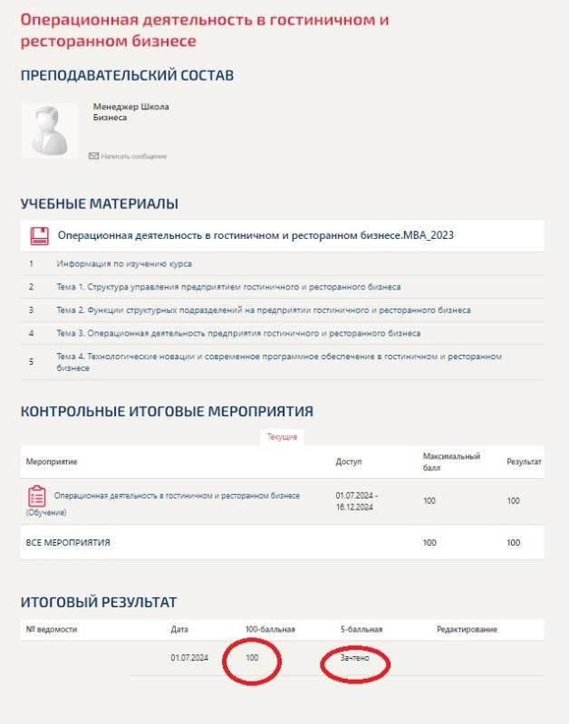 Операционная деятельность в гостиничном и ресторанном бизнесе.МВА_2023